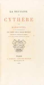 1879. LIBRO. (BIBLIOFILIA). MARMONTEL: LA NEUVAINE DE CYTHÈRE. Paris : Ed. A. Barraud, 1879. 4º.