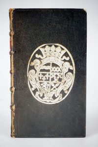 FORGET (Pierre) . Les Sentimens universels. Paris, Anthoine de Sommaville, 1646. Petit in-12, maroquin noir, dos à nerfs orné des initiales LC, armes dorées au centre des plats, dentelle intérieure, tranches dorées (reliure de l'époque)....
