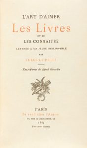 1884. LIBRO. (BIBLIOFILIA). LE PETIT, JULES: L'ART D'AIMER LES LIVRES ET DE LES CONNAITRE LETTRES A UN JEUNE BIBLIOPHILE. Paris : Chez l'auteur, 1884. 8º mayor.