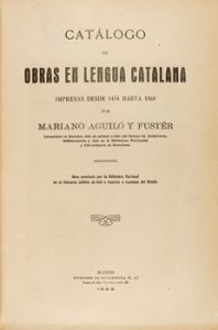 1923. LIBRO. AGUILÓ Y FUSTER, MARIANO: CATÁLOGO DE OBRAS EN LENGUA CATALANA IMPRESAS DESDE 1474 HASTA 1860. Madrid : Imp. Sucesores de Rivadeneyra, 1923. 4º.