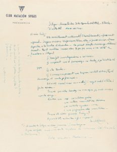 • [1]. Carta con membrete del ´Club Natación Sitges, Presidencia´. Fechada en 31 de noviembre de 1944. Una hoja de papel escrita enteramente a mano. Texto en lengua catalana.