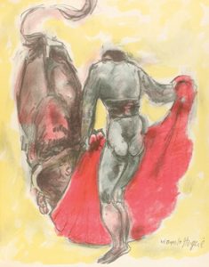 1947. LIBRO. (BIBLIOFILIA-ENCUADERNACIÓN). LUJÁN, NÉSTOR : DE TOROS Y TOREROS. Ilustraciones originales de Manolo Hugué. Litografías realizadas por Camilo Fábregas. Barcelona : Amigos del Libro, 1947. Folio mayor.