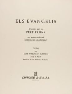 1961. LIBRO. (BIBLIOFILIA). PRUNA, PERE (ILUSTR.) : . ELS EVANGELIS. Text segons versió dels monjos de Montserrat. Proemi per Anselm Mª Albareda. Barcelona : Edit. Barna, 1961. Folio.