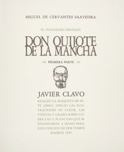 Cabeceras, culs-de-lamp, capitales y los grabados son al cobre realizados por Javier Calvo y un retrato de Cervantes también firmado.