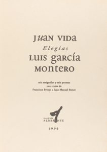 1999. LIBRO. ( BIBLIOFILIA). VIDA, JUAN y GARCÍA MONTERO, LUIS : ELEGÍAS. Granada : Galería Almirante, 1999. Folio.