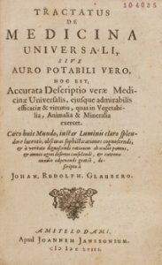 1658. LIBRO. (MEDICINA-ALQUIMIA). GLAUBERO, JOHAN RUDOLPH : TRACTATUS DE MEDICINA UNIVERSALI, SIVE AURO POTABILI VERO, HOC EST, ACCURATA DESCRIPTIO VERAE MEDICINAE UNIVERSALIS.. Amstelodami [Amsterdam] : Joannem Janssonium, 1658. 8º menor.