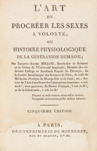 1820 ca. LIBRO. (MEDICINA). MILLOT, JACQUES ANDRE : L´ART DE PROCRÉER LES SEXES A VOLONTÉ, OU HISTOIRE PHYSIOLOGIQUE DE LA GENERATION HUMAINE. Paris : Imp. de Migneret, 1820 ca. 8º mayor.