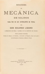 1881. LIBRO. (CIENCIAS). LOZANO, EDUARDO : NOCIONES DE MECÁNICA DE SÓLIDOS PARA USO DE LOS ETUDIANTES DE FÍSICA. Madrid: Tip. Gregorio Juste, 1881. 8º mayor.