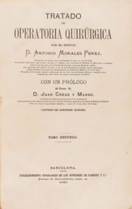 1881. LIBRO. (MEDICINA). MORALES PEREZ, ANTONIO : TRATADO DE OPERATORIA QUIRÚRGICA. Barcelona : Est. Tip. de los Sucs. de N. Ramírez y Cía., 1881. 2 vol. en 4º menor.