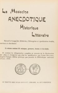 1906. LIBRO. (MEDICINA). LA MÉDICINE ANECDOTIQUE HISTORIQUE LITTÉRAIRE. Paris : Jules Rousset, 1906. 3 vol. en 4º.