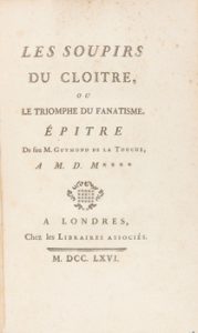 1766. LIBRO. (LITERATURA). TOUCHE, M. GUYMOND DE LA : LES SOUPIRS DU CLOITRE, OU LE TRIOMPHE DU FANATISME. Londres : Chez Libr. Associés, 1766. 8º mayor.