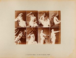 1870 ca. FOTOGRAFÍA. (ARTE). [ALBUM D'ETUDES DE NUS FEMENINS]. Paris : Ed. A. Calavas, 1870 ca. Folio apaisado. 22 lám. de 8 fotografías.