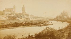 Conjunto de 9 fotografías en papel albuminado, 9 vistas de la ciudad de Gerona, destacamos el pont Ferrat, campanar de San Fèlix, riu Onyar y La vall de San Daniel.
