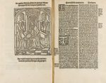 Precioso gótico con portada a dos tintas y grabados xilográficos. Texto a dos columnas, apostillas marginales.