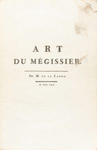 1765. LIBRO. (ARTES Y OFICIOS). LANDE, M. DE LA : ART DE MÉGISSIER. [Paris :] Imp. H. L. Guerin & L. F. Delatour, 1765. Gran folio. 4