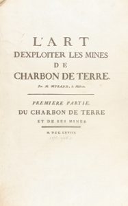 1768. LIBRO. (ARTES Y OFICIOS). MORAND, M. : L'ART D'EXPLOITER LES MINES DE CHARBON DE TERRE. PREMIER PARTIE. Paris : S. imp., 1768. Gran folio.