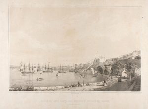 1800 ca. GRABADO. MAHON. DORON, J. : VISTA DE UNA PARTE DEL PUERTO Y CIUDAD DE MAHON. TORNADA DE LA ALAMEDA. Madrid : Lit. de J. Vallejo. 1800 ca.