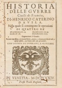 1634. LIBRO. (HISTORIA UNIVERSAL). DAVILA, ENRIQUE CATERINO : HISTORIA DELLE GUERRE CIVILI DI FRANCIA. Venetia: Paolo Baglioni, 1634. 8º mayor. 1