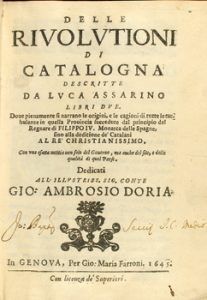 Interesante y contemporánea crónica sobre la ´Guerra dels Segadors´ del historiador y escritor italo-español Luca Assarini. Palau 18584.