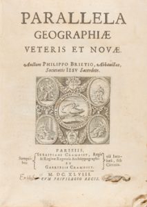 1648. LIBRO. (HISTORIA). BRIETIO, PHILIPPO : PARALLELA GEOGRAPHIAE VETERIS NOVAE. TOMO I. Paris : Imp. Sebastiani Cramoisy, 1648. 4º mayor.