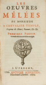 1694. LIBRO. (HISTORIA). CHEVALIER, TEMPLE : LES OEUVRES MÊLÉES. Utrecht : Libr. Antoine Schouten, 1694. 8º menor.