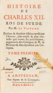 1734. LIBRO. (HISTORIA). VOLTAIRE, M. DE : HISTOIRE DE CHARLES XII. ROI DE SUEDE. Amsterdam : Chez librairie nommé ci-dessus, 1734. 2 vol. en 8º menor.