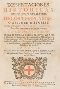 1747. LIBRO. (TEMPLARIOS). RODRIGUEZ DE CAMPOMANES, PEDRO : DISSERTACIONES HISTORICAS DEL ORDEN Y CAVALLERIA DE LOS TEMPLARIOS, O RESUMEN HISTORIAL DE SUS PRINCIPIOS, FUNDACION, INSTITUTO, PROGRESSOS, Y EXTINCION EN EL CONCILIO DE VIENA. Madrid :...