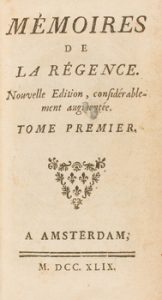 1749. LIBRO. (HISTORIA). MÉMOIRES DE LA RÉGENCE. NOUVELLE EDITION, CONSIDÉRALEMENT AUGMENTÉE. Amsterdam : s. imp., 1949. 4 vol. en 8º menor.