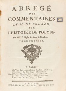 1754. LIBRO. (HISTORIA UNIVERSAL). FOLARD, M. DE : ABREGÉ DES COMMENTAIRES DE M. DE FOLARD, SUR L´HISTOIRE DE POLYBE. Paris : Gandouin et alia, 1754. 2 vol. en 4º.