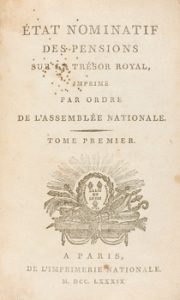 1789. LIBRO. (HISTORIA-ECONOMIA). ÉTAT NOMINATIF DES PENSIONS SUR LE TRÉSOR ROYAL, IMPRIMÉ PAR ORDRE DE L'ASSEMBLÉE NATIONALE. Paris : Imp. Nationale, 1789. 8º mayor.