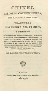 1796. LIBRO. (CHINA). GENET VIANCE Y TREVI, TOMÁS : CHINKI. HISTORIA COCHINCHINESA, ÚTIL Y APLICABLE Á OTROS PAISES: TRADUCIDA LITERALMENTE DEL FRANCÉS, É INTERPOLADA DE REFLEXIONES POLÍTICO-ECONÓMICAS, DISPUESTAS EN FORMA DE DIÁLOGO ENTRE...