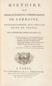 1797. LIBRO. (HISTORIA). MONTJOYE : HISTOIRE DE MARIE-ANTOINETTE-JOSEPHE-JEANNE DE LORRAINE, ARCHIDUCHESSE D'AUTRICHE REINA DE FRANCE.. París : Imp. H. L. Perroneau, 1797. 8º.
