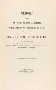 1855. LIBRO. (HISTORIA-GUERRA CRIMEA). PRIM, JUAN : MEMORIA SOBRE EL VIAJE MILITAR A ORIENTE PRESENTADA AL GOBIERNO DE S.M. POR [..] GEFE DE LA COMISIÓN DE SEÑORES OFICIALES DEL EJÉRCITO ESPAÑOL, NOMBRADA EN 1853 PARA SEGUIR Y ESTUDIAR LAS...