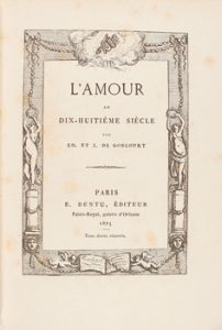 1875. LIBRO. (HISTORIA). GONCOURT, ED. ET J. : L'AMOUR AU DIX-HUITIÈME SIÈCLE. París : Ed. E. Dentu, 1875. 8º.