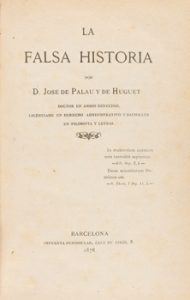 1878. LIBRO. (HISTORIA). PALAU Y DE HUGUET, JOSÉ DE : LA FALSA HISTORIA. Barcelona : Imp. Peninsular, 1878. 8º mayor.