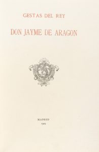 1909. LIBRO. (HISTORIA). GESTAS DEL REY DON JAYME DE ARAGON. Madrid : Imp. Fortanet, por la Sociedad de Bibliófilos Madrileños, 1909. 4º menor.