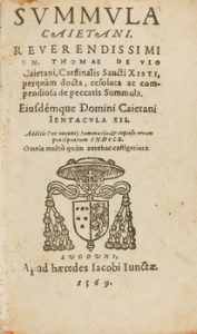 1569 ca. LIBRO. (RELIGIÓN). VIO, THOMAS DE : SUMMULA CAIETANI. Lugduni : Imp. Iacabi Iunctae, 1569. 12 º.
