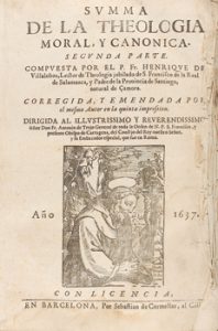 1637. LIBRO. (RELIGIÓN). VILLALOBOS, HENRIQUE DE:. SUMMA DE LA THEOLOGIA MORAL, Y CANONICA. SEGUNDA PARTE. Barcelona : Imp. Sebastian de Comellas, 14 h. + 781 p. + 23 h. Folio.