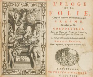 1731. LIBRO : (HUMANIDADES). ERASME : L´ELOGE DE LA FOLIE. Trad. Gueudeville. Amsterdam : Ed. François l´Honoré, 1731. 8º menor.