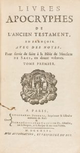 1742. LIBRO : (HUMANIDADES). LIVRES APOCRYPHES DE L´ANCIEN TESTAMENT... avec notes pour servir de suite à la Bible de Monsieur de Saci. París : Guillaume Desprez, 1742. 2 vol. 8º menor.