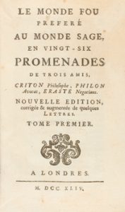 1744. LIBRO : (FILOSOFÍA). CRITON, PHILON, ERASTE : LE MONDE FOY FREFERÉ AU MONDE SAGE, EN VINGT-SIX PROMENADES DE TROIS AMIS... Londres : S. imp., 1744. 8º menor.