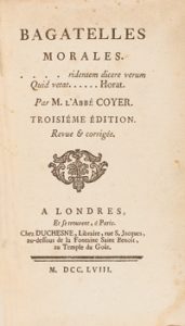1758. LIBRO : (MORAL-RELIGION). COYER, ABBÉ : BAGATELLES MORALES. Londres : Chez Duchesne, 1758. 8º menor.