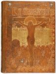 Bella enc. de la época en piel gofrada con motivos florales y diseño modernista, estampada en dorados en plano y lomo, 3 clavos remachados en plano, realizado por J. Roca, restaurado.
