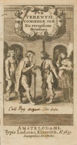 1653. LIBRO : (LITERATURA CLÁSICA). TERENTII, PUB. : COMOEDIAE SEX EX RECENSIONE HEINSIANA. Amstelodami : tip. Ludovici Elzevirii, 1653. 12º.