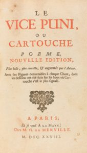 1738. LIBRO : (LITERATURA FRANCESA). [RACOT DE GRANDVAL, NICOLAS : ]. LE VICE PUNI, OY CARTOUCHE. POEME. Paris : Chez M. G. Merville, 1738. 8º mayor.