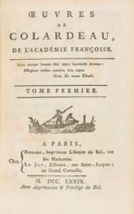 1779. LIBRO : (LITERATURA). COLARDEAU : ŒUVRES DE... Paris : Chez Ballard, 1779. 2 vol. 8º menor.