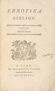 1783. LIBRO : (LITERATURA). [MIRABEAU, HONORE GABRIEL DE RIQUETI COMTE DE : ]. ERROTIKA BIBLION. Roma : Imp. de Vatican, 1783. 8º mayor.