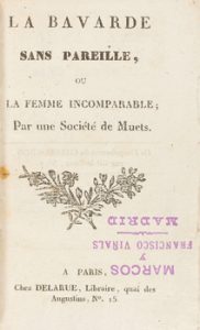 1790 ca. LIBRO : (LITERATURA). LA BAVARDE SANS PAREILLE, OU LA FEMME INCOMPARABLE. Paris : Ed. Delarue, s.a. 12º.