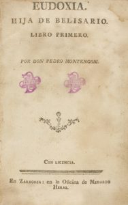 1795 ca. LIBRO : (LITERATURA CASTELLANA). MONTENGON, PEDRO : EUDOXIA. HIJA DE BELISARIO. Zaragoza : Oficina de Medardo Heras, s.a. 8º menor.