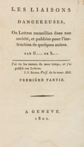 1801. LIBRO : (LITERATURA). [LACLOS, CHORDELOS DE : ]. LES LIASONS DANGEREUSES. Geneve : s. imp., 1801. 4 vol. en 12º.